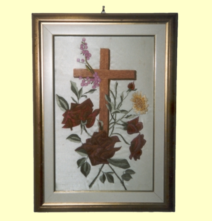 Σταυρό. Μέσω των αποχρώσεων των κεντημένων λουλουδιών και του Σταυρού